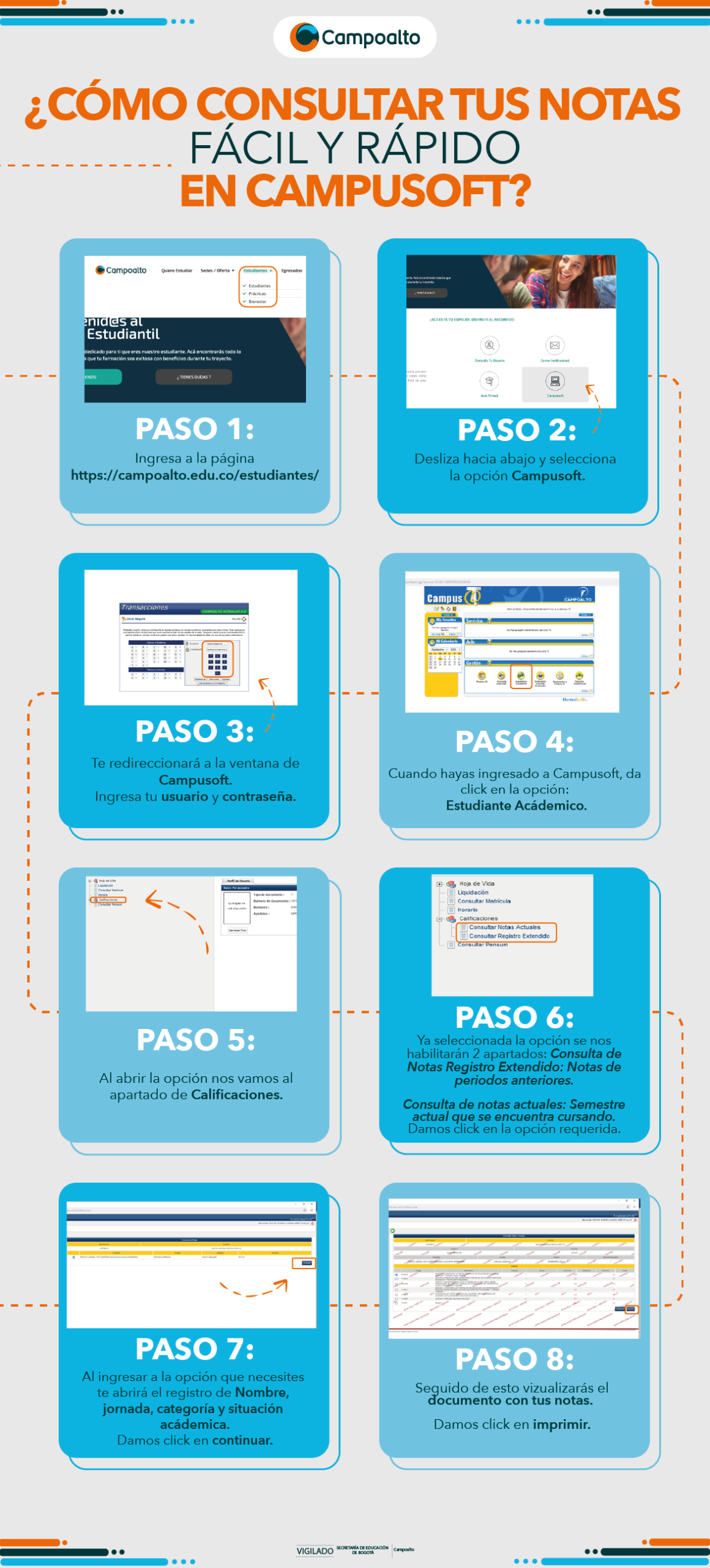 Estudiantes, acá podrás consultar y descargar tus notas desde nuestra plataforma de Campusoft.
